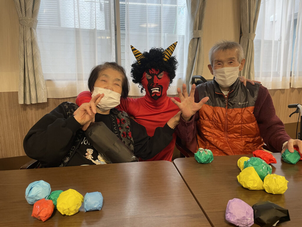 節分レク 投稿日: 2026年2月27日2026年2月27日 投稿者: ケア・ブリッジ法隆寺 2月といえば節分・・・! ということで、赤鬼と青鬼を呼んで思いっきり豆まきを楽しんでいただきました(^^)/ みなさん豆まきより鬼に夢中でした(笑) 節分レクの様子はこちらから→https://youtube.com/shorts/O384lSk9iw4?feature=share